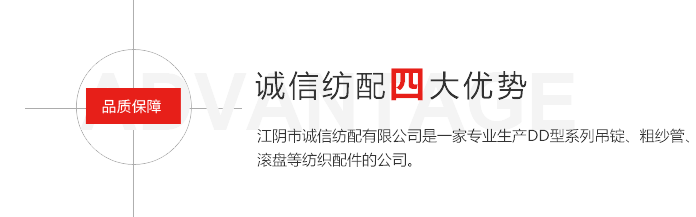 本公司專業生產吊錠、紗架、賽絡紡裝置、氨綸、錦綸包芯紗裝置、循環(huán)游車等紡織配件。產品加工精細,結構緊湊,價格合理,受到廣大客戶的一致好評。本公司生產的DD型系列吊錠及紡織配件以過硬的質量、優(yōu)惠的價格、優(yōu)良的服務取勝于市場。目前已與山西經緯智能、山西貝斯特機械、蘇州卓郎、天津宏大、青島環(huán)球等全國各大主機廠配套生產。并通過省外貿公司遠銷亞、歐、美等國家和地區。